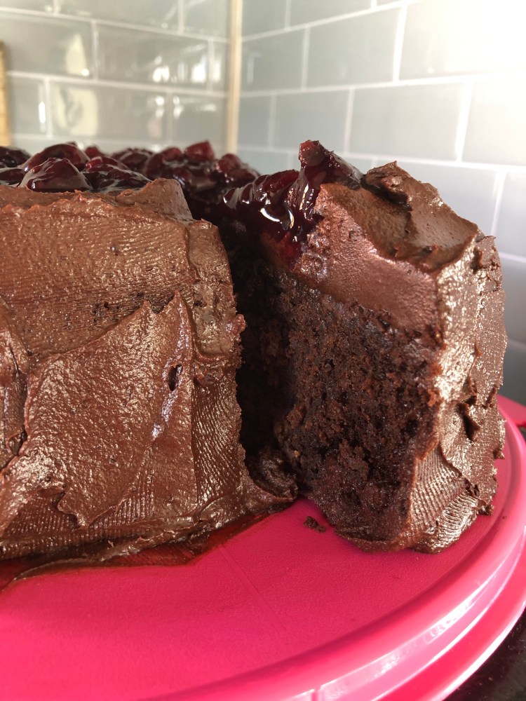 to ice this version i used oliviani spread, icing sugar and cocoa to make some butter cream icing and after applying it i put some cherry and vanilla compote on the top. delicious!!