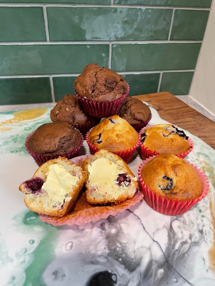 Here’s a picture to motivate you, from the Freezer treats post a while back these ones are blueberry and lemon, and chocolate and cranberry. All ready for another week at school.